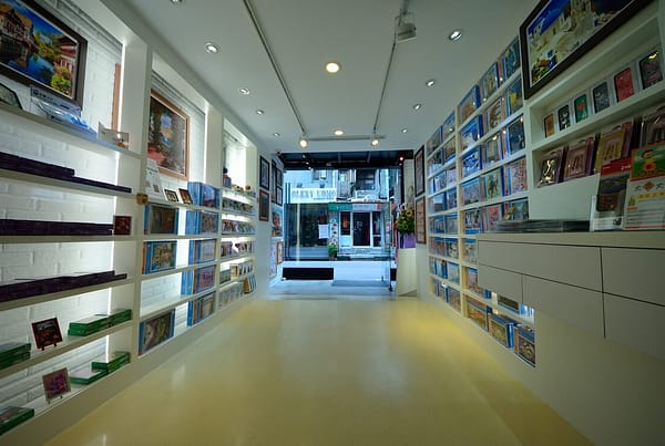 中間的櫃位都擺設著立體3D拼圖,都是最具特色的產品。