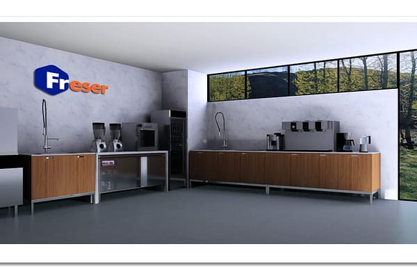 一入門的吧檯是以回收木材搭砌而成的。平時這裡是簡易的飲食調理區,一邊作業一邊看著戶外風景,有種隨意放鬆的輕鬆氛圍,可以轉換調整工作心情。