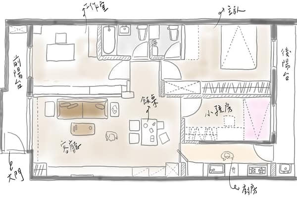 客餐廳採開放式設計,以白色和淺色為視覺主色。