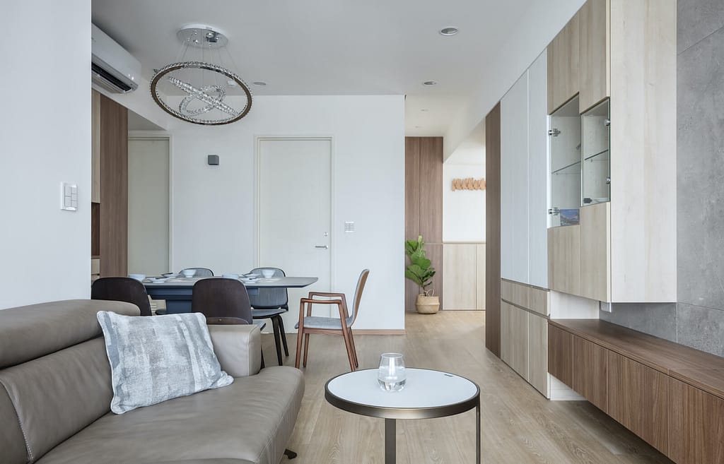 女屋主是透過網路搜尋看到我們的官網,進而有了合作的緣分。原本是希望無印的設計風格,也因女主人愛上一盞夢幻水晶吊燈,於是多了些設計自由度更多的現代北歐風呈現。