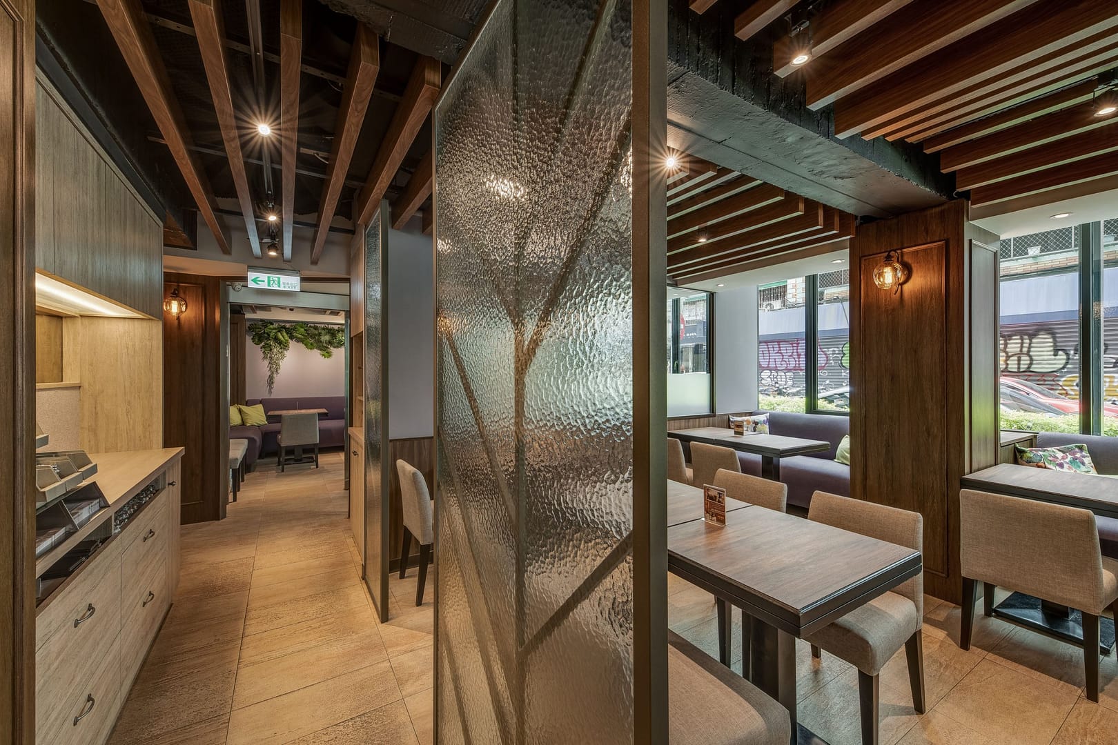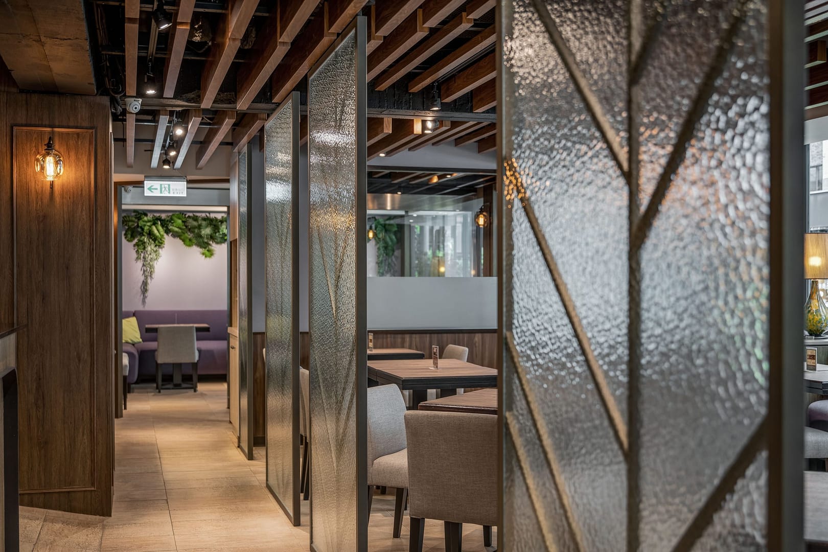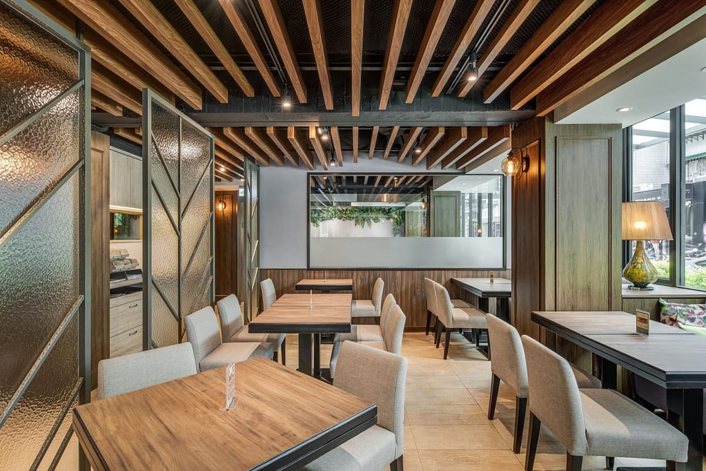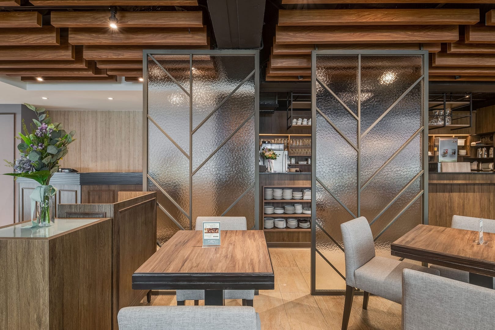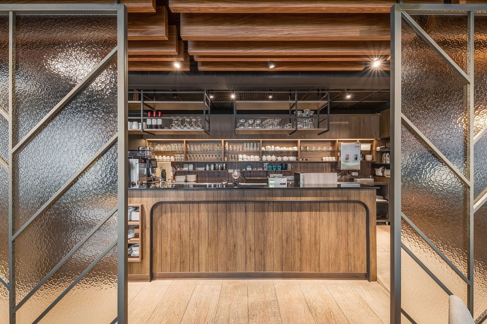 玻璃、鐵件、木作、金屬柵格天花、傢俱