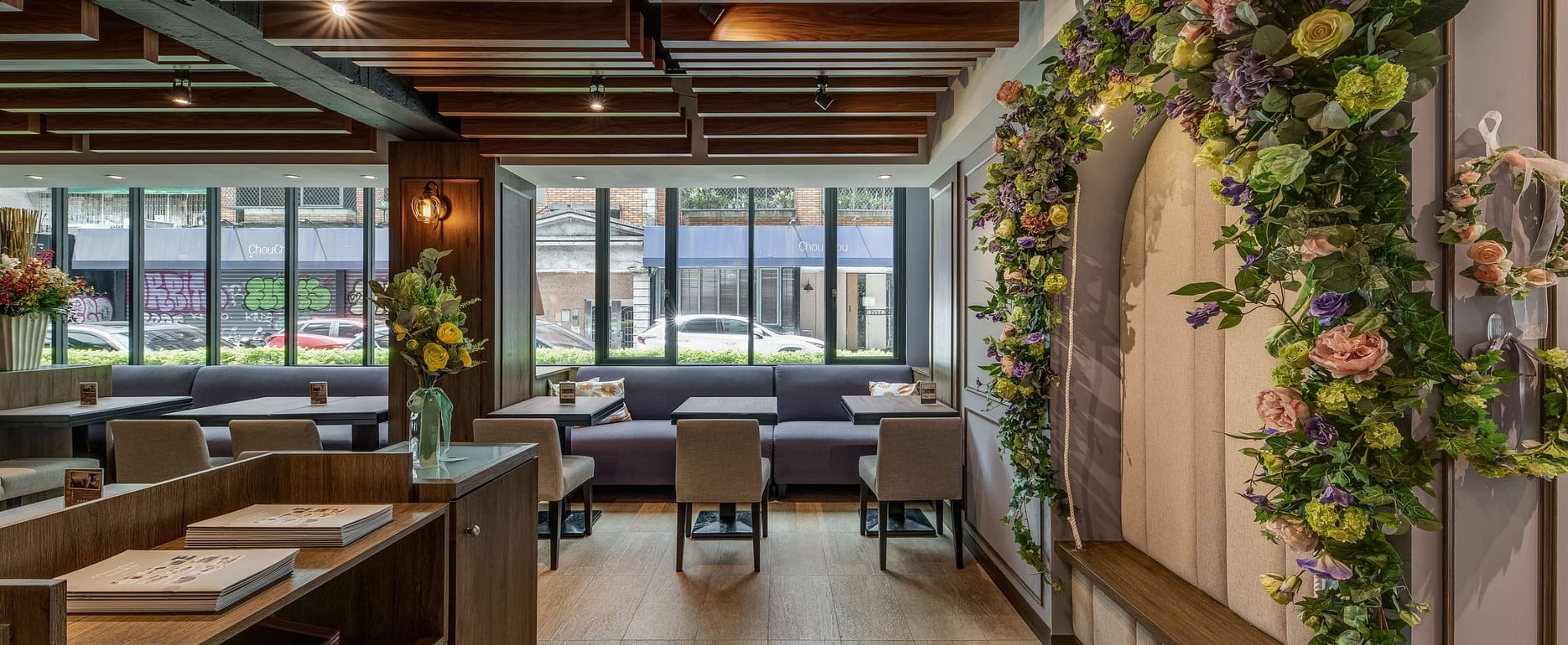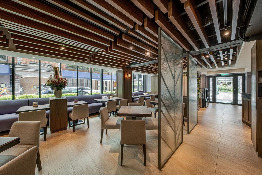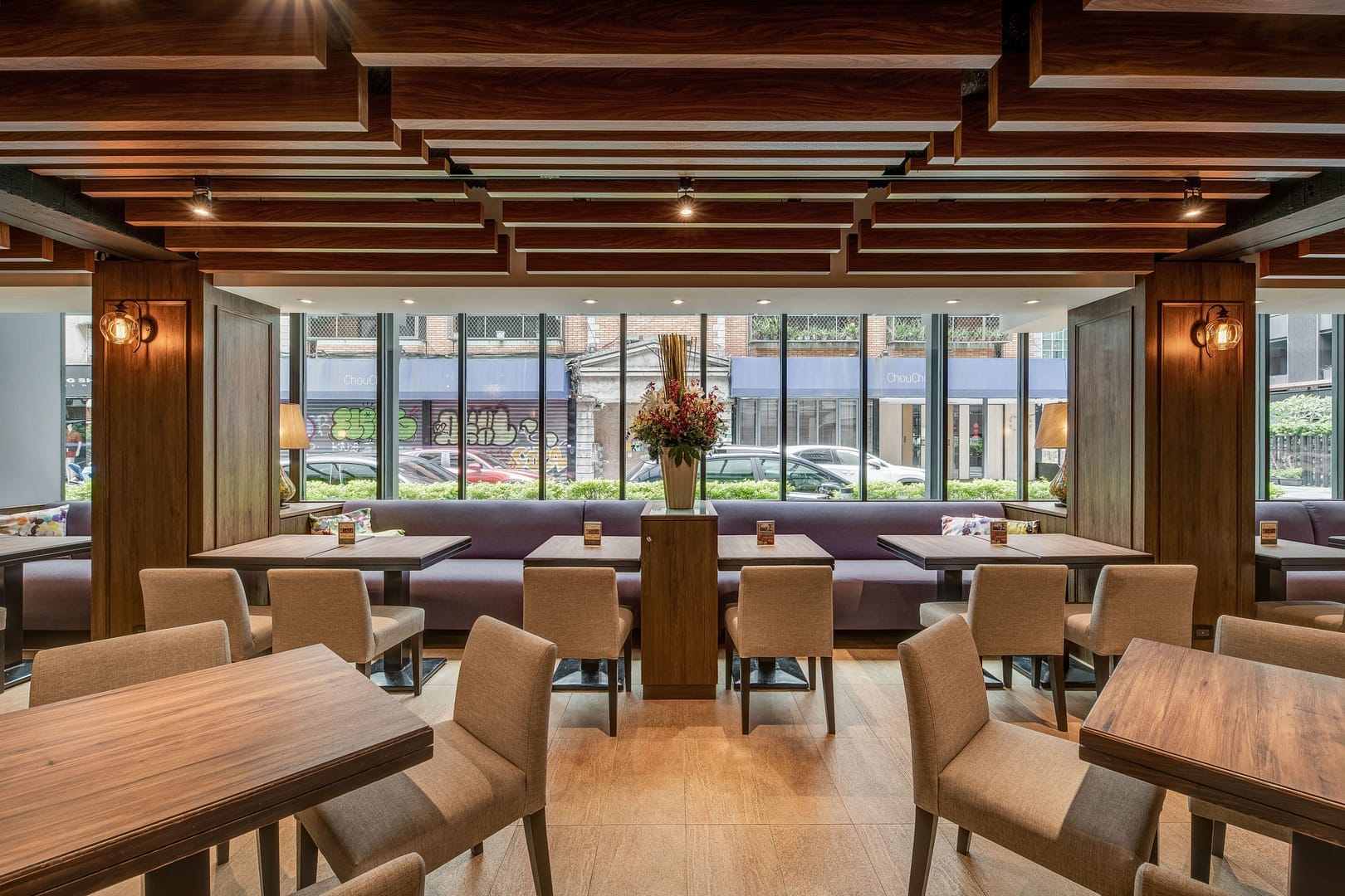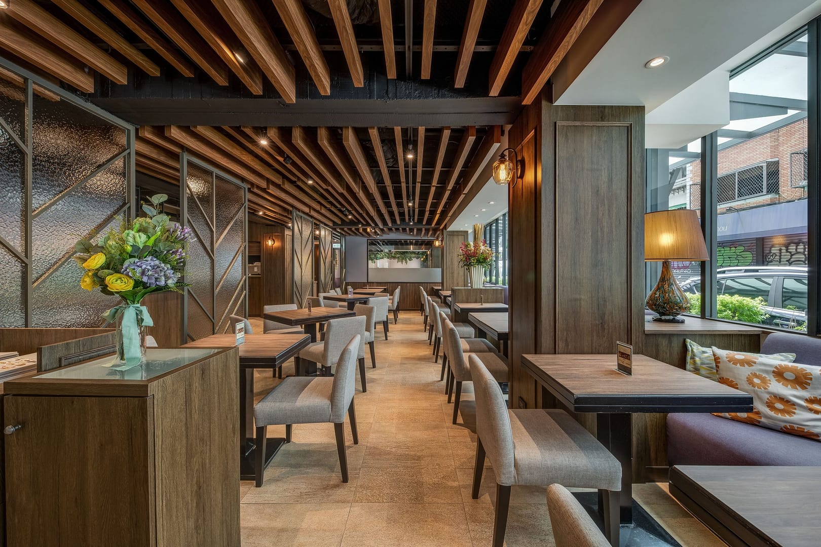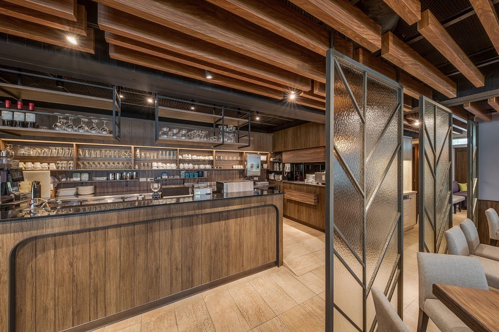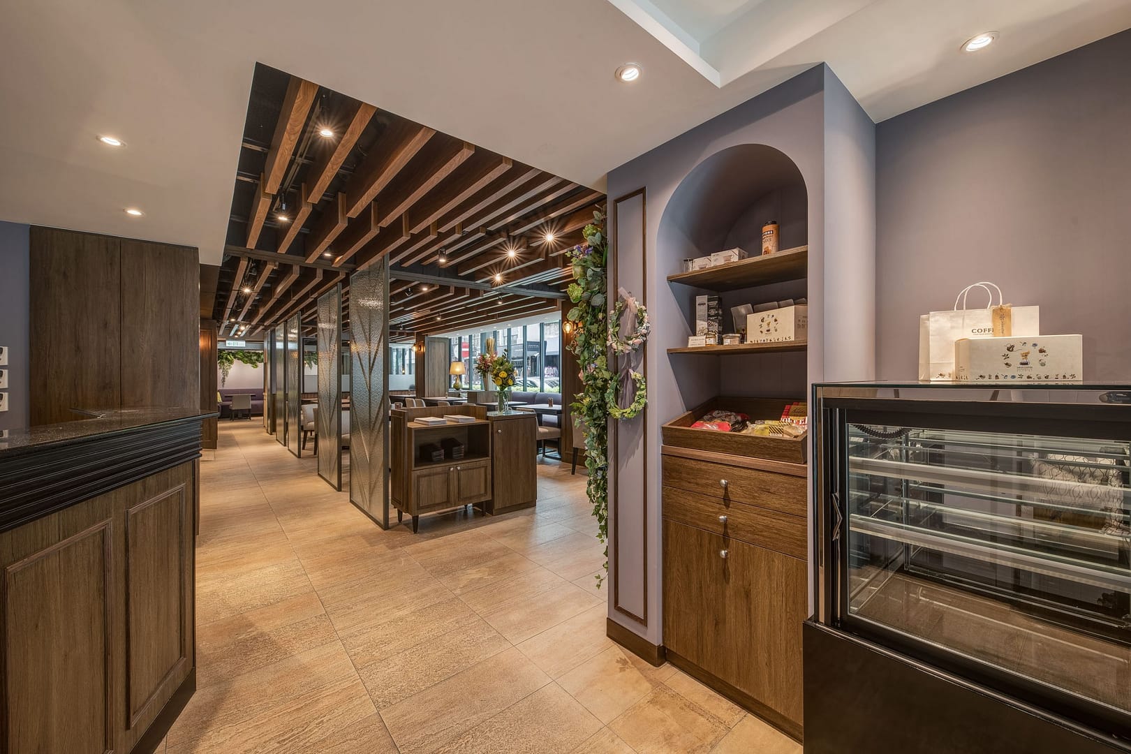 玻璃、鐵件、木作、金屬柵格天花、傢俱