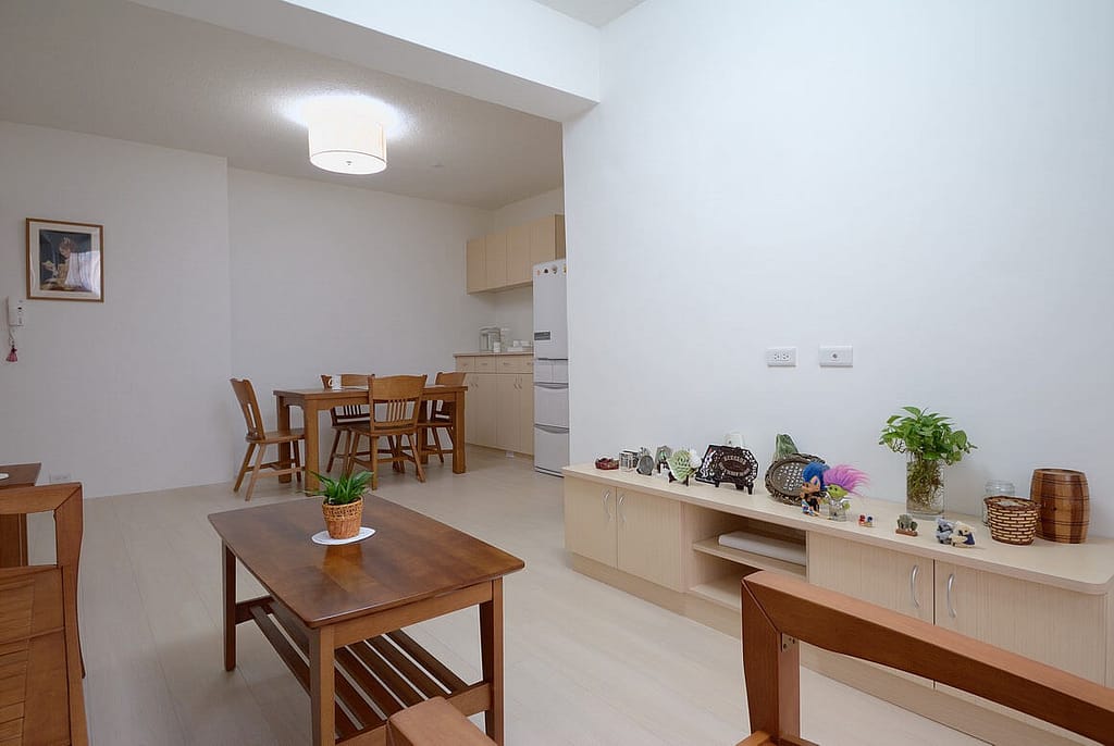 這個約六坪大小之家,除父母外另有兩個活潑的小朋友共同使用一起創造回憶。由超耐磨海島型地板所建構的樓梯,易清理與表現天然木材相近的質感。樓梯下放的收納櫃,以櫃面以美耐板施作避免小朋友刮壞,灰鏡增添時尚感。餐具櫃體呼應樓梯的元素,橫向的灰鏡將空間的視線延伸至客廳。